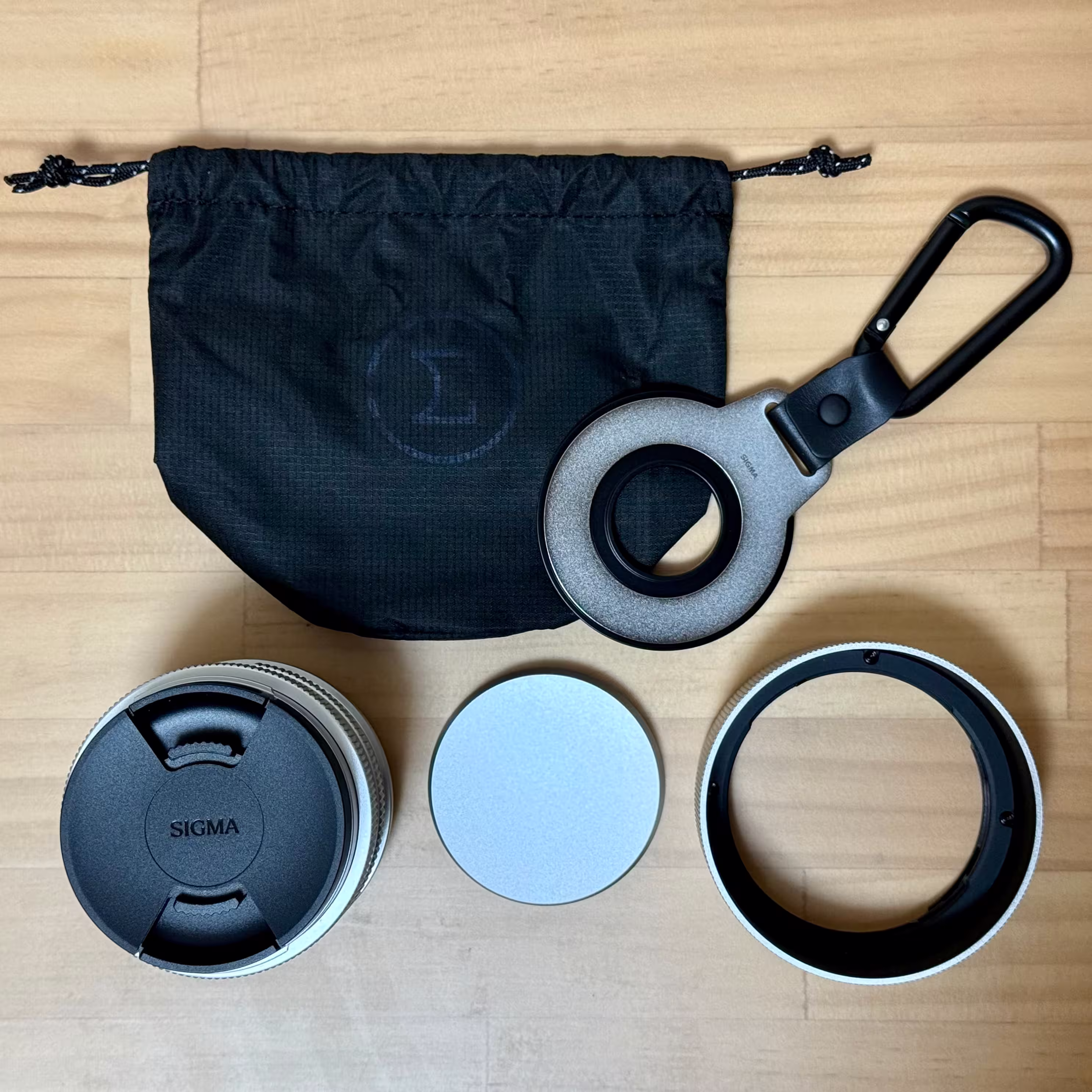 写真右上のLENS CAP HOLDER CH-11は初回の購入特典として付属したもので、レンズの内容物には含まれていません。
